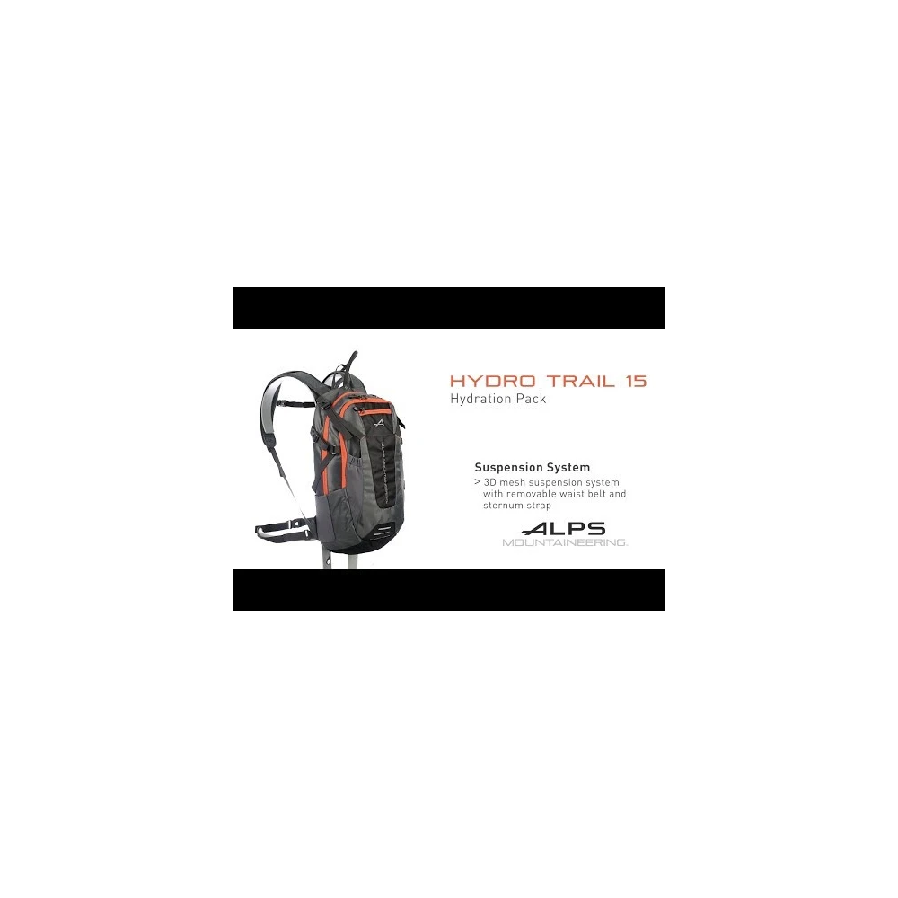 Cycling, running, hiking and climbing are all sports requiring different training, disciplines and equipment, but no matter your passion, there is one thing every athlete must have—quick and easy access to adequate amounts of water. Being without water can quickly become dangerous, and a well-designed hydration pack is the perfect solution. The array of hydration packs designs from ALPS Mountaineering makes carrying water easy and convenient! The Hydro Trail 15 comes equipped with a 3L ALPS hydration reservoir, but it is so much more than just a hydration pack. The pack features a large main compartment, a front organizer pocket, fleece-lined sunglass pocket and an expandable front stretch pocket for stowing a helmet. A 3D mesh suspension system, mesh shoulder straps and removable waist belt give the Hydro Trail 15 a close, comfortable fit to your body. Complete with reflective details, side compression and built-in rain cover the Hydro Trail 15 is the ultimate pack for hauling your most essential gear.